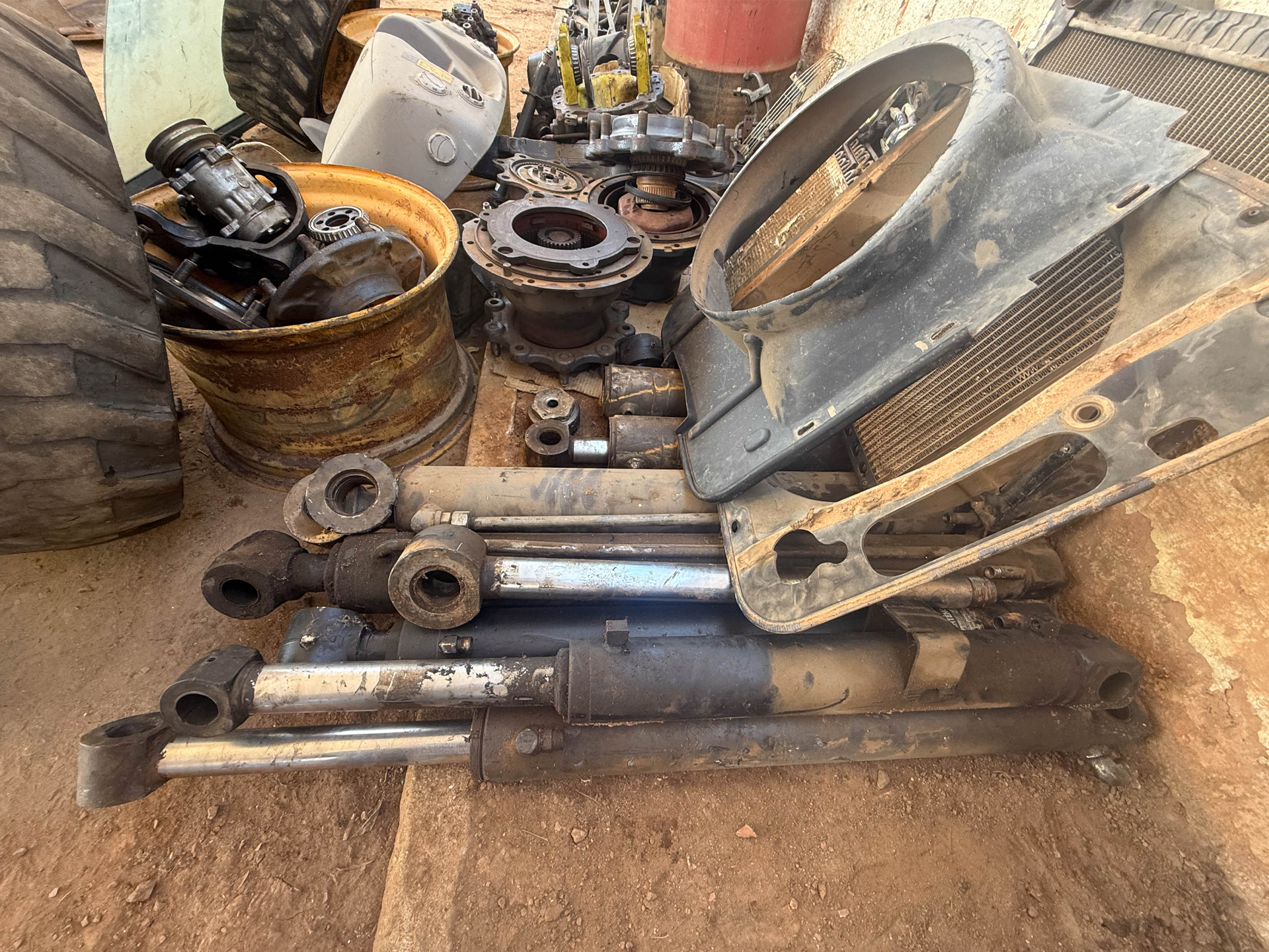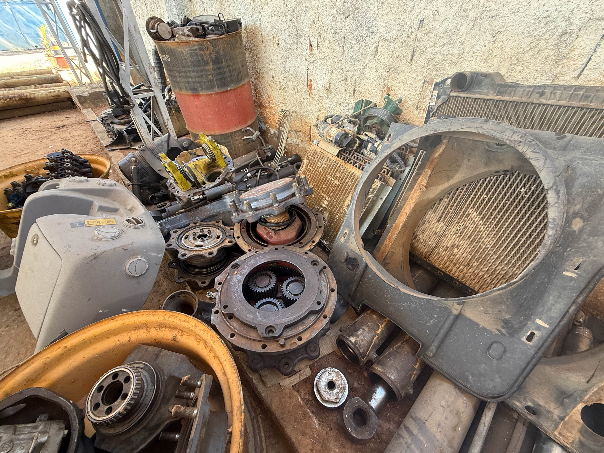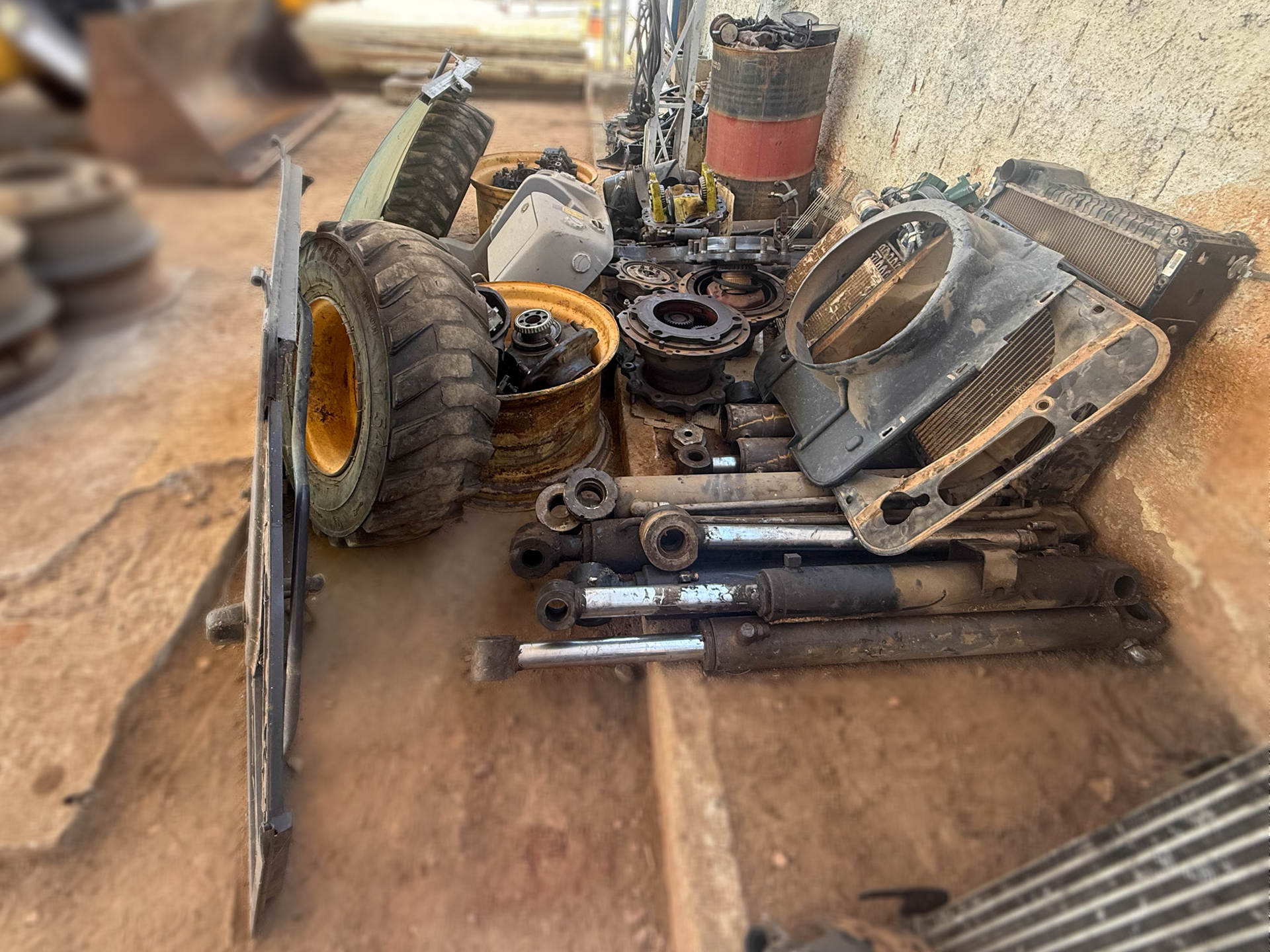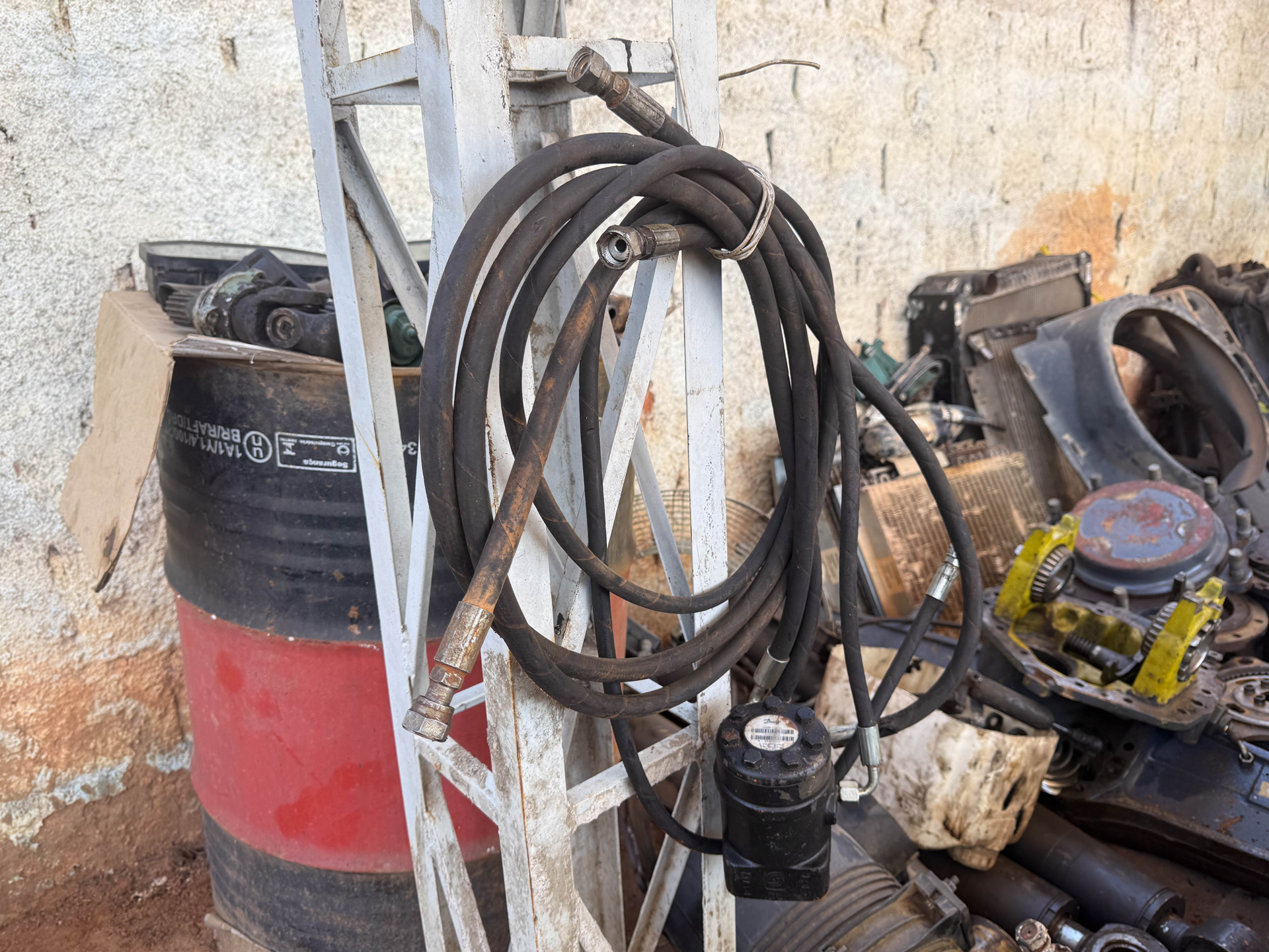 Não possui chave, 10 pistões, 1 carcaça eixo dianteiro, 2 cubos de roda traseiros, 2 cubos de roda dianteiros, 1 bomba hidráulica, 1 diferencial dianteiro (desmontado), 1 bomba orbitrol, 2 painéis frontais (todos da retroescavadeira volvo bl60b), sucata de motor (retroescavadeira jcb), 04 evaporadores de ar-condicionado, 1 radiador de água e 1 radiador de óleo (da retroescavadeira volvo).