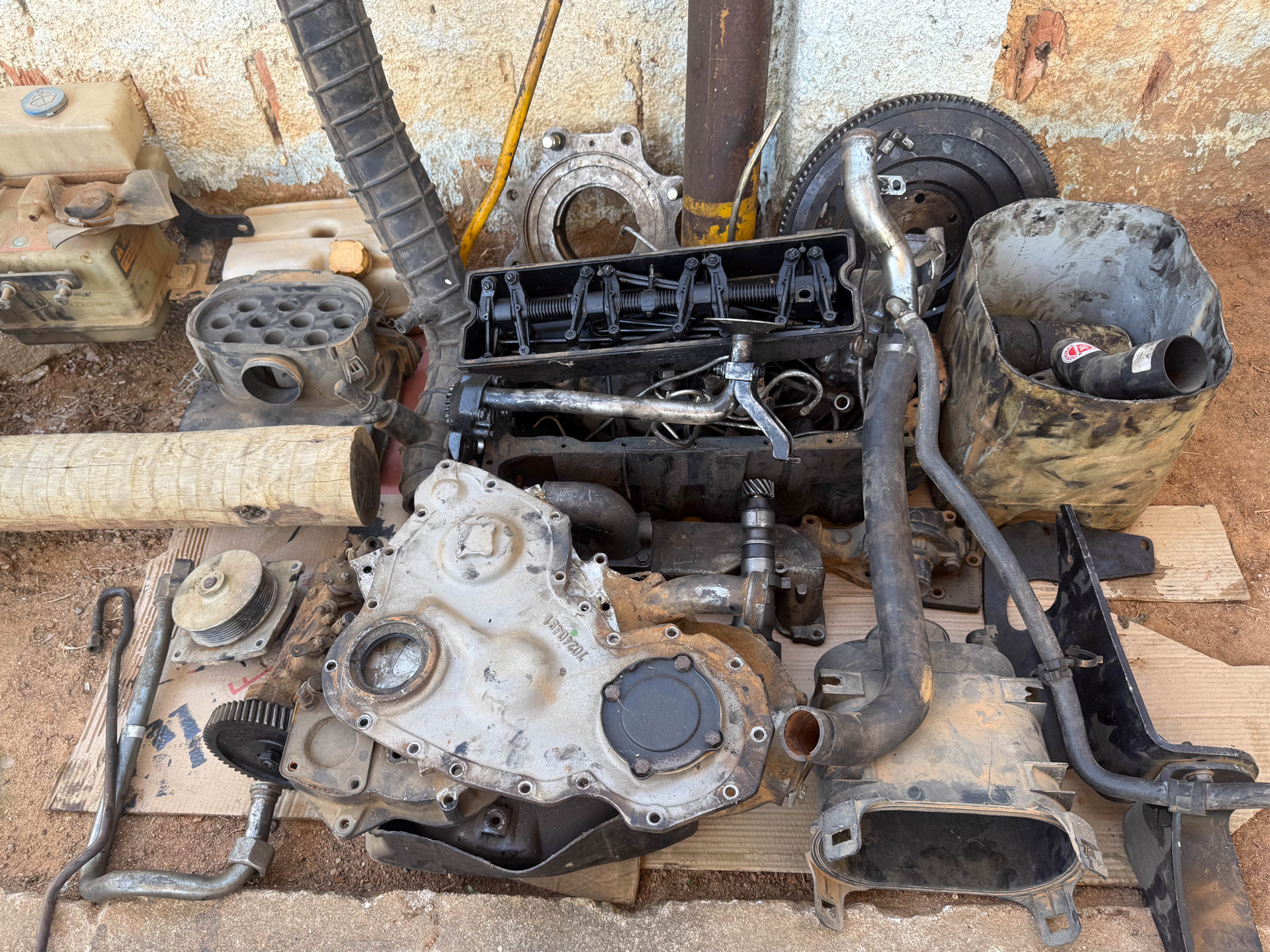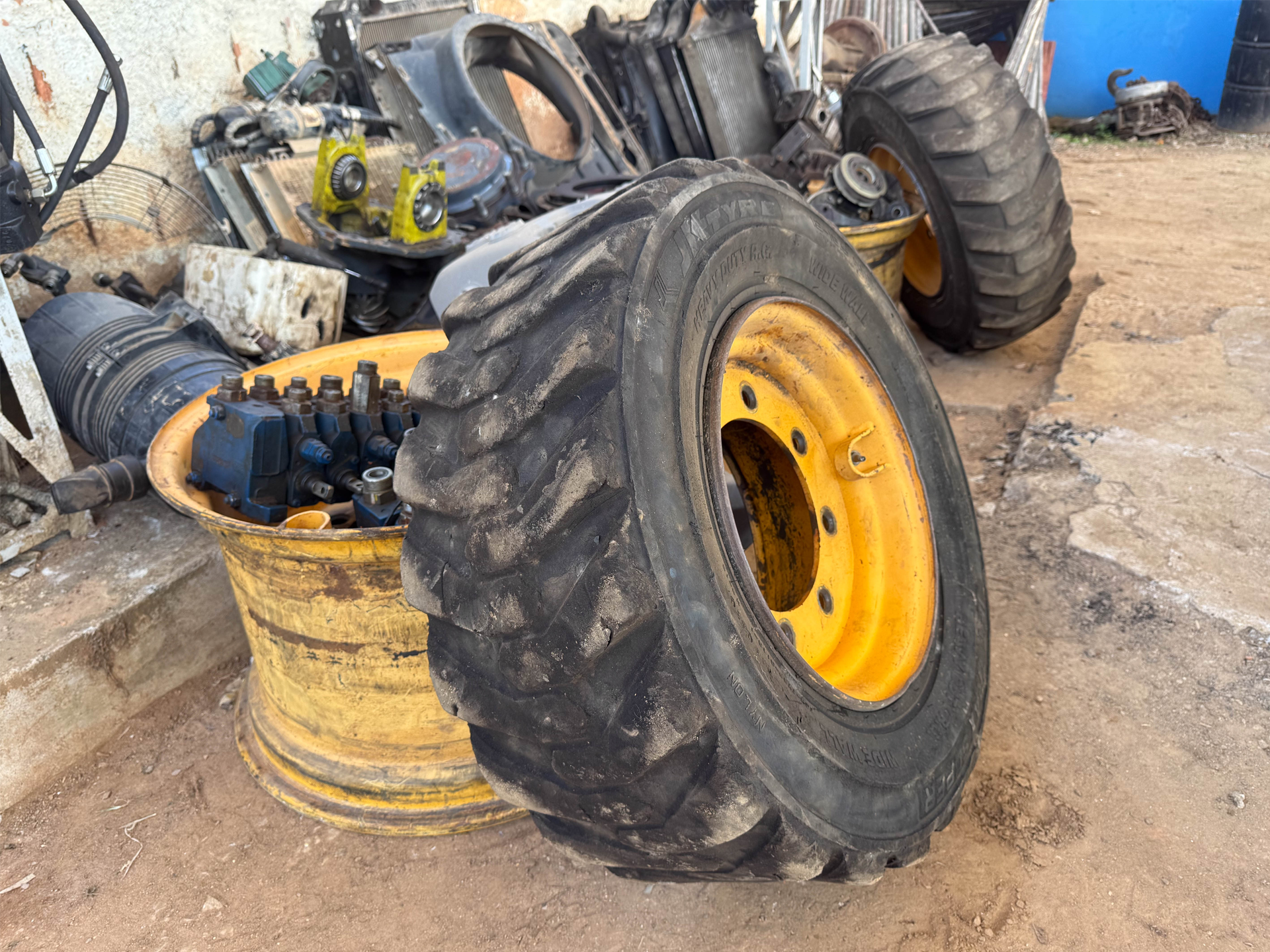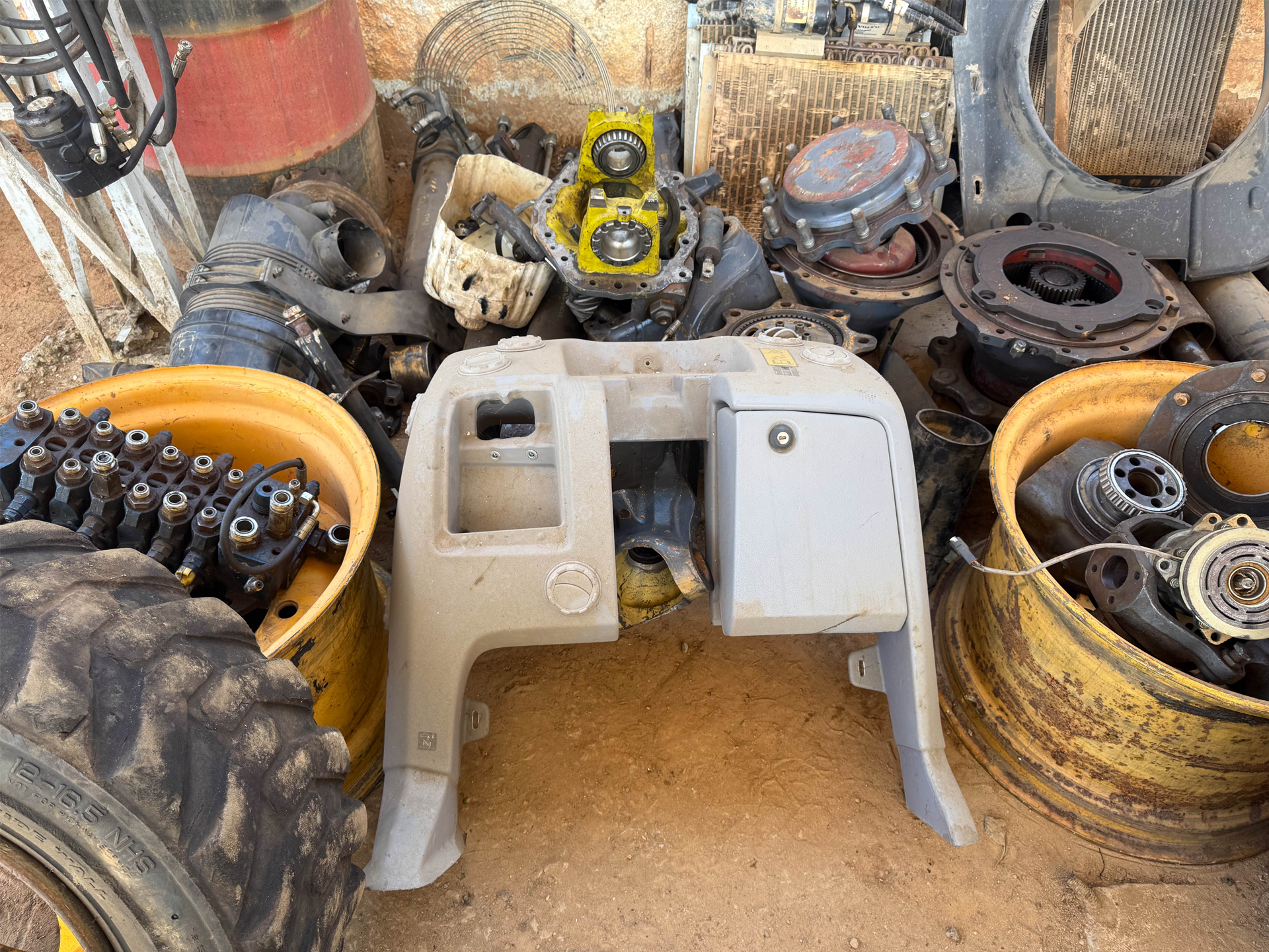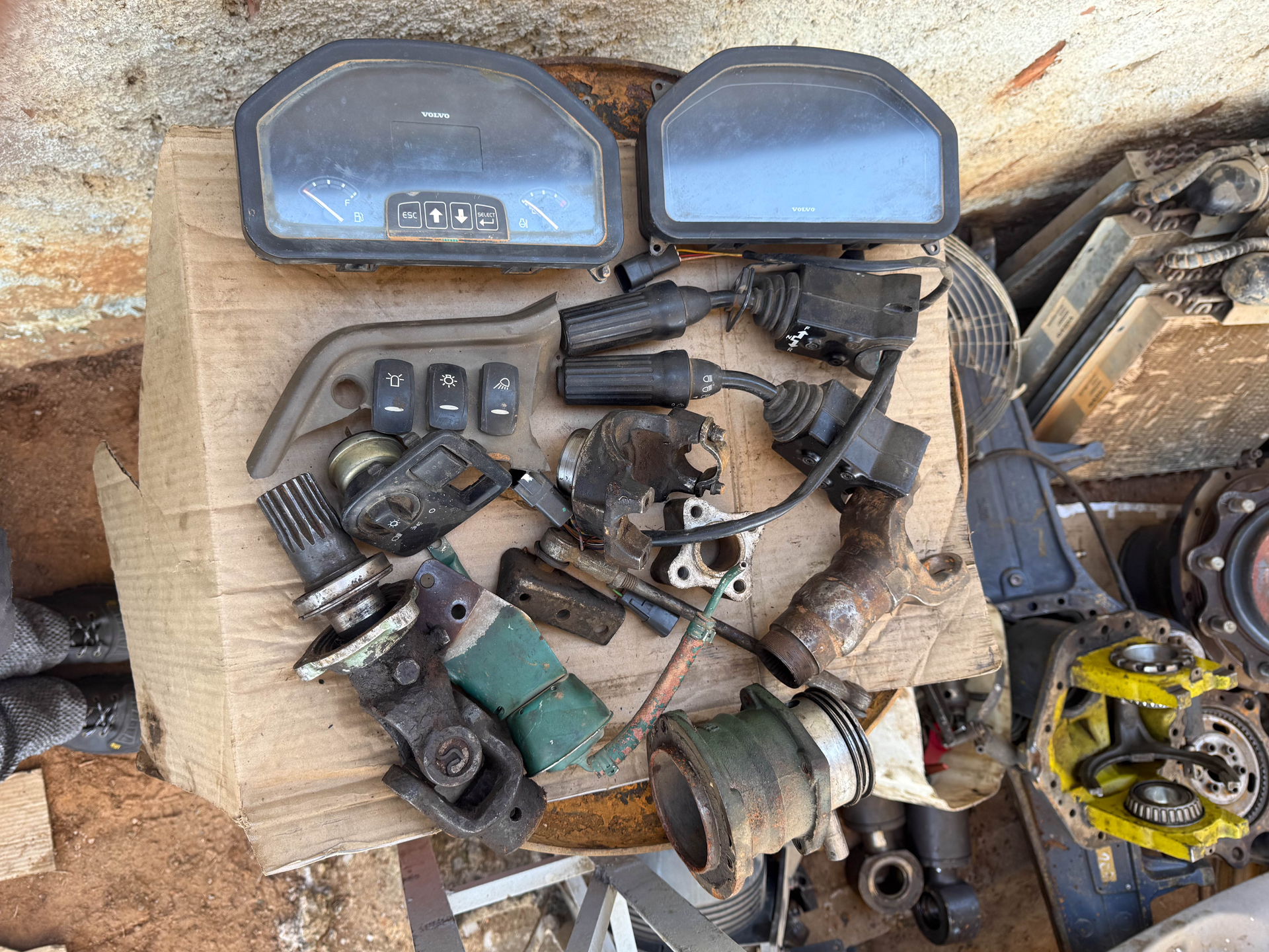 Não possui chave, 10 pistões, 1 carcaça eixo dianteiro, 2 cubos de roda traseiros, 2 cubos de roda dianteiros, 1 bomba hidráulica, 1 diferencial dianteiro (desmontado), 1 bomba orbitrol, 2 painéis frontais (todos da retroescavadeira volvo bl60b), sucata de motor (retroescavadeira jcb), 04 evaporadores de ar-condicionado, 1 radiador de água e 1 radiador de óleo (da retroescavadeira volvo).