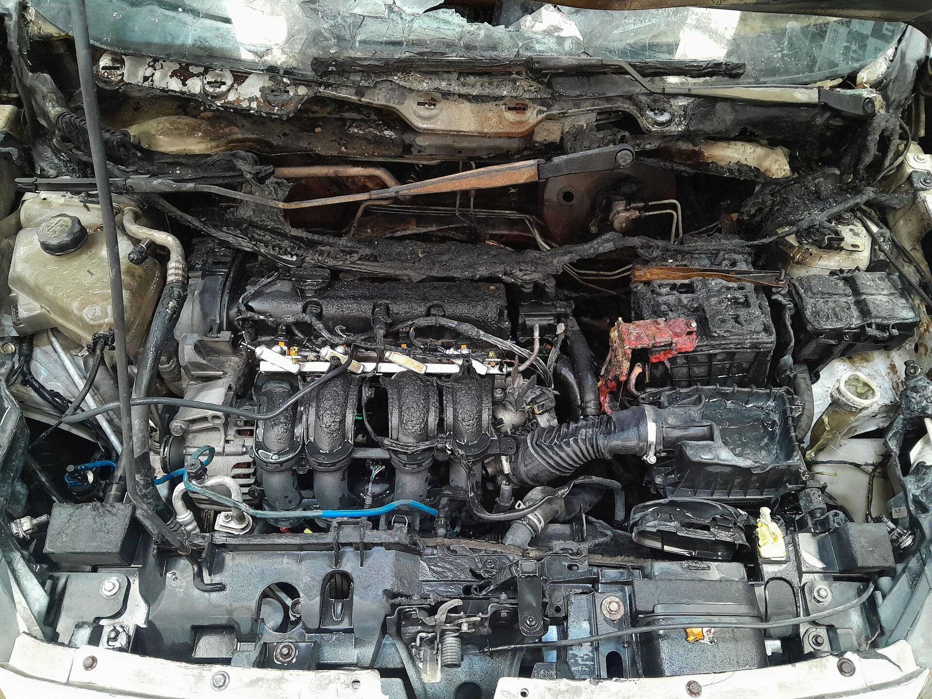 Sucata proveniente de incêndio. etiqueta do compartimento do motor e do câmbio danificadas.